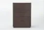 Bring bold minimalism and high function to your personal retreat with our Pierce chest of drawers. From clean, strong lines, to a rich, contemporary color, this 5-drawer design has it all at an unbelievable value. Hardwood and oak veneer instill strength and character, which comes through distinctly in the wood grain. The streamlined, boxy profile is also balanced by thin metal handles and a dark rubbed finish that combines black, grey and brown tones. You will love having this chest of drawers in your bedroom.