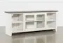 The Dixon White 84" Farmhouse Wood TV Stand is the perfect blend of style and functionality for your living room. Its charming farmhouse design and sturdy construction make it a reliable addition to your home entertainment setup. The stand offers ample storage space with glass doors and multiple shelves, ensuring all your media and accessories are neatly organized.