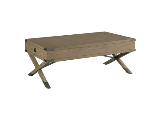 The George Cocktail Table blends industrial charm with refined craftsmanship, making it a standout centerpiece in any living room. Finished in a warm light brown tone, this table is crafted from rubberwood solids and flat cut white oak veneers that showcase the natural grain. Metal corner accents and end caps on the legs give it a rugged, stylish touch, while the "X" base legs add visual interest and sturdy support.