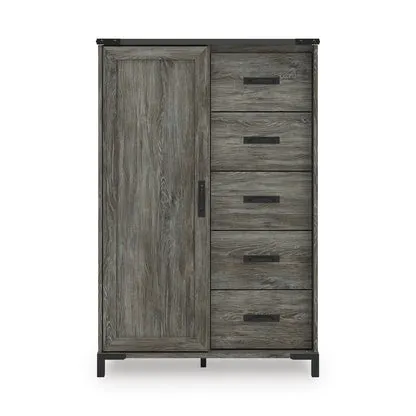 Cool, casual style is for all ages. With this dressing chest, they get the function they need plus the refined design you love. Approachably neutral in a rustic warm gray, it’s adaptable enough to pair with an assortment of existing colors and room decor. Faux metal detailing on the corners lends an industrial edge. The chest's smooth-gliding drawers and cabinet space offer storage for clothes, toys and everything in between.