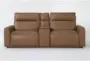 Trenton Saddle Brown Leather 97" 3 Piece Power Reclining Modular Console Loveseat with Power Headrest Wireless Charging Storage Pop Out Cupholders & USB