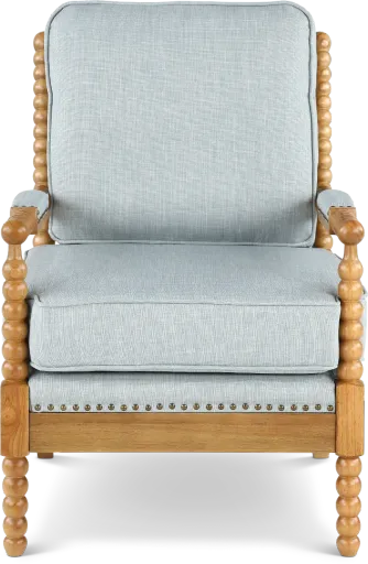 The Madison Park Donohue accent chair provides an elegant and comfortable update to your decor. This accent chair is upholstered in a blue fabric that creates a timeless look. A bronze nail head trim and padded arm rests add the perfect touches to the design. The solid wood legs feature a camel oak wood finish to complement the rich upholstery. Beautifully designed, this accent chair offers the perfect touch to elevate your living space.