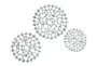 These abstract bowties wall decors are great additions to modern and contemporary homes. This item ships in 1 carton. Feature joined bowtie metal strips creating circular artistic structures. Can be hung vertically using the metal rings on the back; nails and screws not included. Suitable for indoor use only. This item ships fully assembled in one piece. This silver colored wall sculptures comes as a set of 3. Modern style.