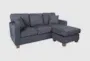 Discover comfort and versatility with the Russell Navy Blue Fabric 74" Sofa with Reversible Chaise. This modern piece features a firm comfort level and is upholstered in 100% polyester, providing a durable and stylish addition to your living room. The loose reversible back and chaise ensure adaptability to your space and preferences.