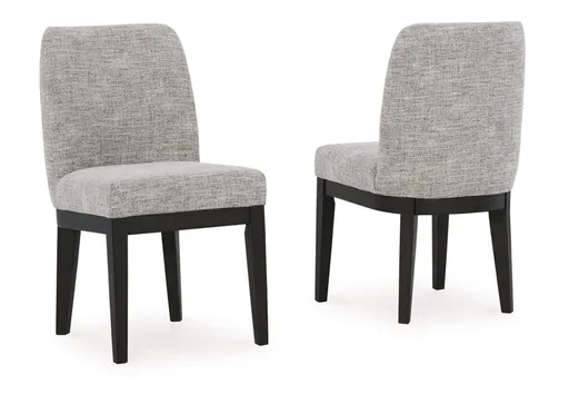 Dressed to thrill, the simply stunning Burkhaus armless dining chair offers a high-design look at a down-to-earth price. Ultra sleek lines are accentuated with a dark waxy brown oak-tone finish that’s so easy on the eyes. Suitably upholstered in a tweed-like neutral fabric, the softly contoured back design is tailor-made for comfort. Whether it's part of a dining arrangement or used as extra seating, it has a timeless look that’s made to last.