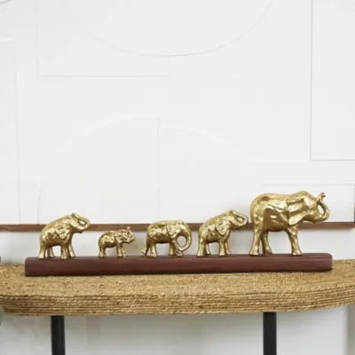 Style this piece on a mantle or console table paired with a glass vase and fresh greenery. Designed with felt or rubber stoppers at the base that prevent scratching furniture and table tops, as well as sliding around. This item ships in 1 carton. Please note that this item is for decorative use only. Aluminum sculpture makes a great gift for any occasion. Suitable for indoor use only. This item ships fully assembled in one piece. Made in India. This is a single gold colored statue. Glam style.