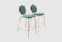 Enhance your dining room or kitchen with the Dessa Green + Gold 39" Counterstool Set Of 2. These modern armless counterstools are designed for comfort and style, featuring a sophisticated green and gold color combination. The set includes two tall stools, perfect for counter height seating.