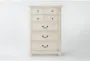 The Kincaid White II 5-Drawer Tall Wood Chest is a stunning addition to any bedroom. Its traditional style and weathered white finish bring a timeless charm to your space. Made from solid hardwood and cathedral okoume veneer, this chest is both durable and beautiful.