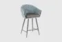 The Braiden Blue Fabric Metal 26" Counter Height Stool is a stylish and functional addition to your dining room or kitchen. Its modern design features a comfortable cushioned seat and recessed armrests, perfect for long conversations or casual meals. The painted steel legs and multicolor fabric upholstery ensure durability and a touch of color to any space.