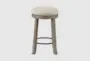 The Joshua 26" Backless Swivel Counter Height Stool is a perfect addition to any dining room or kitchen. Its casual style and neutral grey color make it versatile for various decor themes. The stool features a comfortable upholstered seat made from 100% polyester and a solid wood frame in an aged oak finish.
