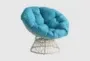 Introducing the Soleil Blue Fabric Swivel Papasan Chair with Cream Wicker Frame. Perfect for the bedroom, kids' room, or living room, this chair combines casual style with vibrant blue color to create a comfortable and stylish seating option. The soft polyester cushion provides a cozy place to relax, while the swivel feature adds functionality and ease of movement.