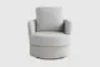 Enhance your living room with the Ember Ivory White Swivel Accent Chair. This casual chair features a loose reversible back and offers a comfortable seating experience with its 100% polyester fabric. The curved design and swivel base make it a versatile addition to any space.