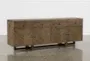Introducing the Palazzo Brown Solid Pine Wood 4 Door 4 Drawer 87" Sideboard Buffet, perfect for adding a touch of rustic charm to your dining room or kitchen. This long rectangular sideboard offers ample storage with its solid pine construction, featuring four doors and four drawers. Its natural brown finish highlights the beautiful characteristics of the wood, making it a versatile piece for any space.