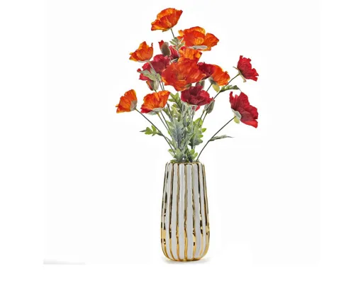 The Poppy in Ceramic Pot is a faux poppy in a striped ceramic vase that looks great in cottage-inspired homes. Shop home decor now!
