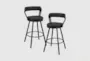 Enhance your dining room or kitchen with the Axel Black Metal Swivel 30.5" Barstool Set of 2. These industrial-style barstools feature a sleek black finish and durable metal construction, ensuring both style and longevity. The swivel design adds functionality and convenience, making them perfect for any food prep and serving space.