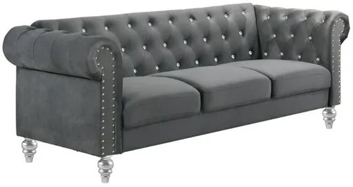 The New Classic Emma Chesterfield velvet 3 seat sofa is a blend of soft elegance and sophisticated design. hipped unassembled for easy placement in any home, its lower profile height makes it small space-friendly, fitting well into smaller rooms while providing full-size seating.