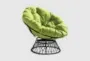 Experience ultimate comfort and style with the Soleil Green Fabric Swivel Papasan Chair with Dark Grey Wicker Frame. This casual, boho-inspired chair features a soft, thick padded, button-tufted polyester cushion in a vibrant green color, perfect for adding a pop of color to any room. The durable metal frame is wrapped in resin wicker, providing both stability and a chic look. This design is the perfect bedroom chair, reading chair, club chair or accent chair for living room.