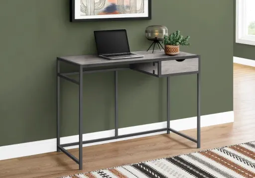 Whether you're starting college, university, your home business or simply dressing up your existing workstation, this industrial-style office desk from RC Willey comes with a driftwood finish and gets the job done. Feel free to use it as a computer desk, writing station, or study table. Put together in a thick panel, the sturdiness pairs with its simplistic style to provide the perfect new desk for your office space. With ample surface area for your laptop, a lamp, and even some decorations, the desk also offers a storage drawer to keep other supplies and accessories neat and tidy. Work comfortably in your home, condo, dorm, or apartment. Available for Online Purchase Only. Assembly required. This product ships direct from the manufacturer, so RC Willey Delivery is not available.