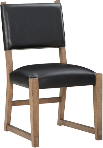 Rustic styling and soft seating in a chair comfortable in a dining, guest, or office setting. The Atmore Side Chair features a beautiful, easy-care black leatherette seat and back accented with a hand-stained, deep driftwood finished solid wood frame.