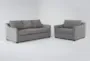 Introducing the Porthos Vintage Grey Fabric Sofa and Twin Memory Foam Arm Chair Sleeper Set. This modern set is designed to provide comfort and style to any living room. The reversible back cushions offer versatility and convenience, while the 100% polyester fabric ensures durability and easy maintenance.