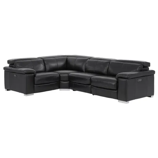 The Charlie Black Leather Power Reclining Sectional brings a great amount of comfortable seating to your living room or entertainment center setting. You will sit back comfortably on the smooth oil black genuine top grain leather where the body touches with power motion accessed in the left and right recliners and your headrests so it’s easy to unwind after a long day. Built-in USB ports make it effortless to charge your devices when necessary.