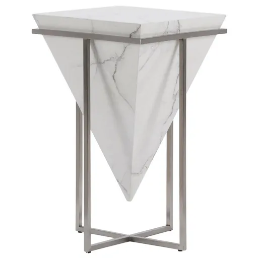 Sleek, elegant and striking, the Fortuna Marble Side Table has it all. Made of faux marble with a brushed stainless steel base, this gorgeous end table features a dramatic cone-shaped design and impressive smooth, glossy look. Part of the Carlo Perazzi Exclusive Collection, this head-turning side table is sure to make quite the impression in your space.
