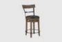 Introducing the Doyle Rust Brown Wood Swivel 24" Barstool with Cushion Seat Set of 2. These traditional barstools are perfect for your dining room or kitchen, offering both style and comfort. The rich mahogany wood and buckskin cushion seat create a warm and inviting atmosphere.