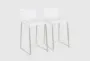 Elevate your dining or kitchen space with the Cara Brushed Stainless Metal + White Faux Leather 24.5" Counter Height Stool Set of 2. These modern armless stools feature a sleek design that complements any contemporary décor. The stainless steel frame and white faux leather upholstery provide a sophisticated yet comfortable seating solution for your home.