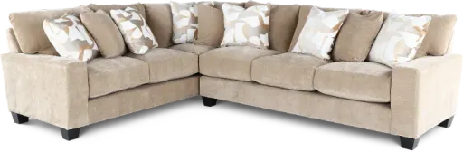 Your living space is about to get a serious style and comfort upgrade with the Valderrama collection! Durably crafted, this 2-piece sectional features a streamlined silhouette covered in khaki-hued chenille fabric and handsomely accented with 9 toss pillows. The extra-thick foam seat cushions offer soft, comfortable support while its feather-down back cushions make unwinding hard to resist. lncludes right-facing sofa and left-facing sectional sofa.