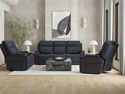 Elevate your living area to the pinnacle of comfort and entertainment with the Melody Sofa, Loveseat, and Recliner Set. This comprehensive ensemble offers the ultimate in relaxation and luxury, seamlessly combining modern design with cutting-edge technology.Adorned in a captivating dark charcoal leather, each piece exudes sophistication and style. The set includes the Melody Sofa and Loveseat, each equipped with cup holders, a storage console, side control panels, and triple power functionality, ensuring your comfort and convenience.The Sofa takes the experience even further with a built-in home theater system, delivering an immersive audiovisual experience directly to your living space. The inclusion of USB outlets ensures that your devices remain charged and accessible.The set also comes with a Melody Recliner, allowing you to complete your entertainment haven. Experience the perfect fusion of style, comfort, and value with the Melody Sofa, Loveseat, and Recliner Set – a testament to quality craftsmanship and innovative design that transforms your living area into a haven of relaxation and entertainment.