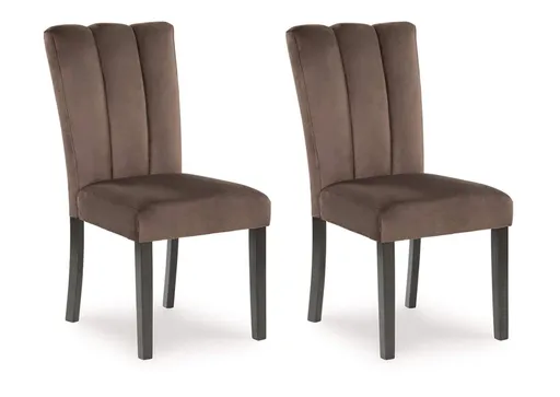 This dining chair reflects your highly contemporary point of view. Its ultra-soft velvet upholstery in chocolate brown is a feast for the senses. Channel stitching details give the chair an elevated, tailored feel. What a delicious choice for an elegantly elevated dining room.