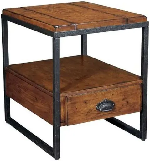 The Hammary® Baja vintage umber rectangular end table with black frame combines durability and style for everyday use. Its sturdy frame supports a spacious surface ideal for displaying décor, lighting, or essentials, making it a versatile addition to any living space.