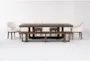 Palazzo Brown Natural Rectangular Solid Pine Wood 106" Dining Table With Bench + Side + Armchair Set For 6 | Trestle