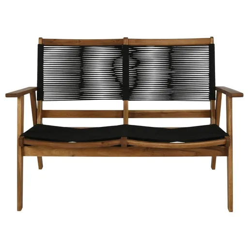 There's room for two to sit, relax and enjoy the view on the Laguna Black Loveseat. This water resistant piece is made with acacia wood and features rope strap accents that give it a lovely color contrast. Its angled tapered legs add to its modern style. Feel free to use this two-seater indoors or outdoors, depending on the needs of your space. Consider pairing it with a matching coffee table to complete the look.