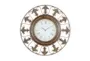 Add character to your home corners with this large fleur de lis analog wall clock displayed on your pastel or natural-toned wall. Requires 1 AA battery. Battery not included. This item ships in 1 carton. Roman numerals clock face. The clock mechanism runs silent. Large round brown metal wall clock with fleur de lis sculptures. Can be hung vertically using the keyholes on the back; nails and screws not included. Suitable for indoor use only. This item ships fully assembled in one piece. This is a single brown colored oversized wall clock. Rustic style. Showcases "Madison Clock Co." and "Est. 1847" typographies.