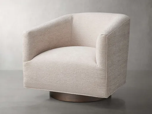 Craftsman-built by artisans, our Ellison Swivel Chair features a minimalist design that will complement contemporary living spaces. Its low back and gently sloped arms frame comfortable upholstery, hand-sewn in soft, sophisticated fabric, while smooth swiveling motion adds versatility to any seating arrangement.
