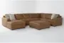 Enhance your living space with the Big Sur Saddle Brown Leather 4 Piece U-Shaped Modular Sectional. This versatile sectional includes an armless sofa, left arm facing chaise, and a cocktail ottoman, providing ample seating and comfort for your family and friends. The rich leather upholstery and tufted detailing make it a timeless addition to any home.