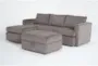 Introducing the Basil Grey Brown Fabric Modular 93" 2 Piece Sectional with Left Arm Facing Chaise & Ottoman. This modern sectional is designed to enhance your living room with its versatile and comfortable features. The Bear Hug grey fabric, made from 100% polyester, ensures durability and a soft touch.