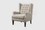 Enhance your living room with the Maxwel Beige Linen Tufted Fabric Wingback Arm Chair. This traditional design features a firm comfort level, perfect for enjoying a good book or relaxing after a long day. The button tufted detailing and loose seat add a touch of sophistication to any space.