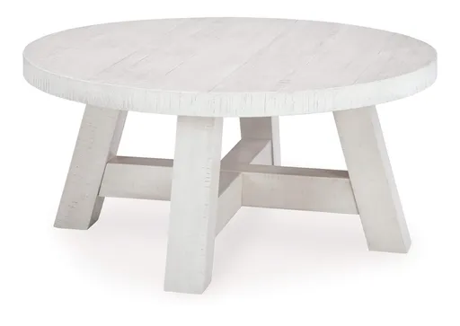 Carefully crafted with farmhouse appeal, the Jallison coffee table features braced posts and a thick round tabletop. The off-white finish adds depth and character to its simple silhouette. You won't be able to resist the organic appeal of this versatile piece.