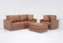 Enhance your living room with the Alicia Saddle Brown Vegan Faux Leather 3 Piece 90" Sofa Swivel Chair & Ottoman Set. This comfortable and stylish set features a sofa, a swivel chair, and an ottoman, all upholstered in rich saddle brown faux leather. The casual design and functional swivel chair make it a perfect addition to any home.