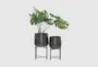 Inspired by sleek elegance and clean lines, this 19" 17" Black Metal Indoor Outdoor Planter with Removable Stand Set of 2 by CosmoLiving Cosmopolitan offers effortless luxury. This black indoor outdoor planter set is made entirely of durable, high-quality iron, ensuring long-lasting use. The round plant pot set boasts a modern black finish that is both sleek and satin in appearance.