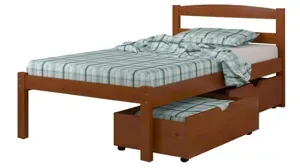 This Econo Bed with Dual Underbed Drawers has a simple style that will match any dcor. The solid pine wood construction gives this bed superior durability that is sure to last for years to come. This twin bed includes a mattress ready slat system eliminating the need for box springs.