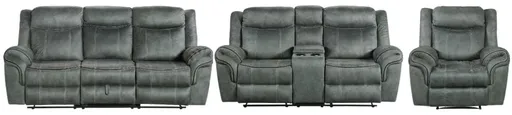 The Sorrento 3-Piece Living Room Set in charcoal provides ultimate comfort and convenience. This set includes a sofa, loveseat, and recliner, all in a beautiful brown. The sofa features a drop-down console for extra storage and functionality, while the loveseat center console with cup holders adds extra convenience.