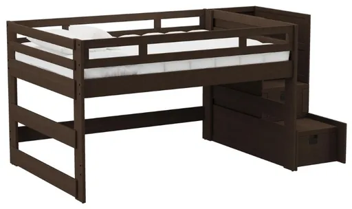 The Cali Kids Complete Full Junior Loft Bed with Staircase is the perfect choice for a stylish and functional bedroom. This loft bed features a full-size bed, providing plenty of space for your child to sleep comfortably. The staircase includes storage drawers, allowing your child to keep their belongings organized and within reach.