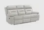 The Ellicott Silver Grey Leather 87" Manual Reclining Sofa offers a perfect blend of comfort and style for your living room. Upholstered in 100% leather, this sofa provides a luxurious feel and exceptional durability. The manual reclining feature allows you to relax in your ideal position with ease.