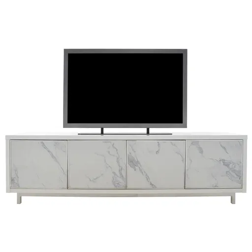 It’s easy to set up an entertainment center in your living room with the Matthew TV Stand. With four push-to-open doors with storage compartments for TV remotes and other entertainment, and wire management cutouts to keep cords organized, this modern TV stand is convenient for every sports or movie night. Plus, if your décor is modern, you’ll appreciate the glossy ceramic accents on the front and the polished stainless steel legs.