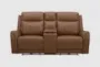 Headley Butternut Brown Leather 79" Power Reclining Glider Console Loveseat With Power Headrest Storage Cupholders & USB