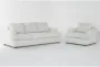 The Zoeller Sand Beige Fabric Sofa & Oversized Chair Set brings casual comfort to your living room space. Its streamlined track arms create a modern silhouette wrapped in luxuriously soft 100% polyester beige upholstered fabric with a cozy, fuzzy texture - perfect for those seeking comfortable sofas and couches. Each piece in this set is customizable within your space to create the perfect living room arrangement.