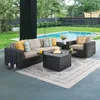 The Laguna Collection is a casual contemporary outdoor patio collection with a tightly woven, wicker design, for a transitional look that won't go out of style. The 3 piece swivel sofa group with a fire pit offers a warmth and inviting ambiance to your space. The sofa and swivel glider are comprised of handwoven, large synthetic strands of resin wicker over a powder-coated aluminum frame. They feature wide, straight arms and textilene seat suspension. The textilene material's flexibility and sturdiness make it a comfortable material for seating.